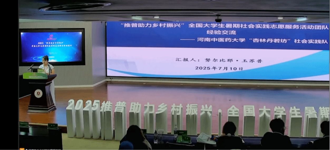 本网讯(文/高梦君 图/徐源)2025年7月10日,“推普助力乡村振兴”全国大学生暑期社会实践志愿服务活动出征仪式在江苏师范大学隆重举行。本次活动由教育部语言文字应用管理司、共青团中央青年发展部联合主办。我校“杏林丹若坊”工作室社会实践团队指导教师努尔比耶・玉苏普作为往届优秀团队代表受邀参会,并作经验分享。
