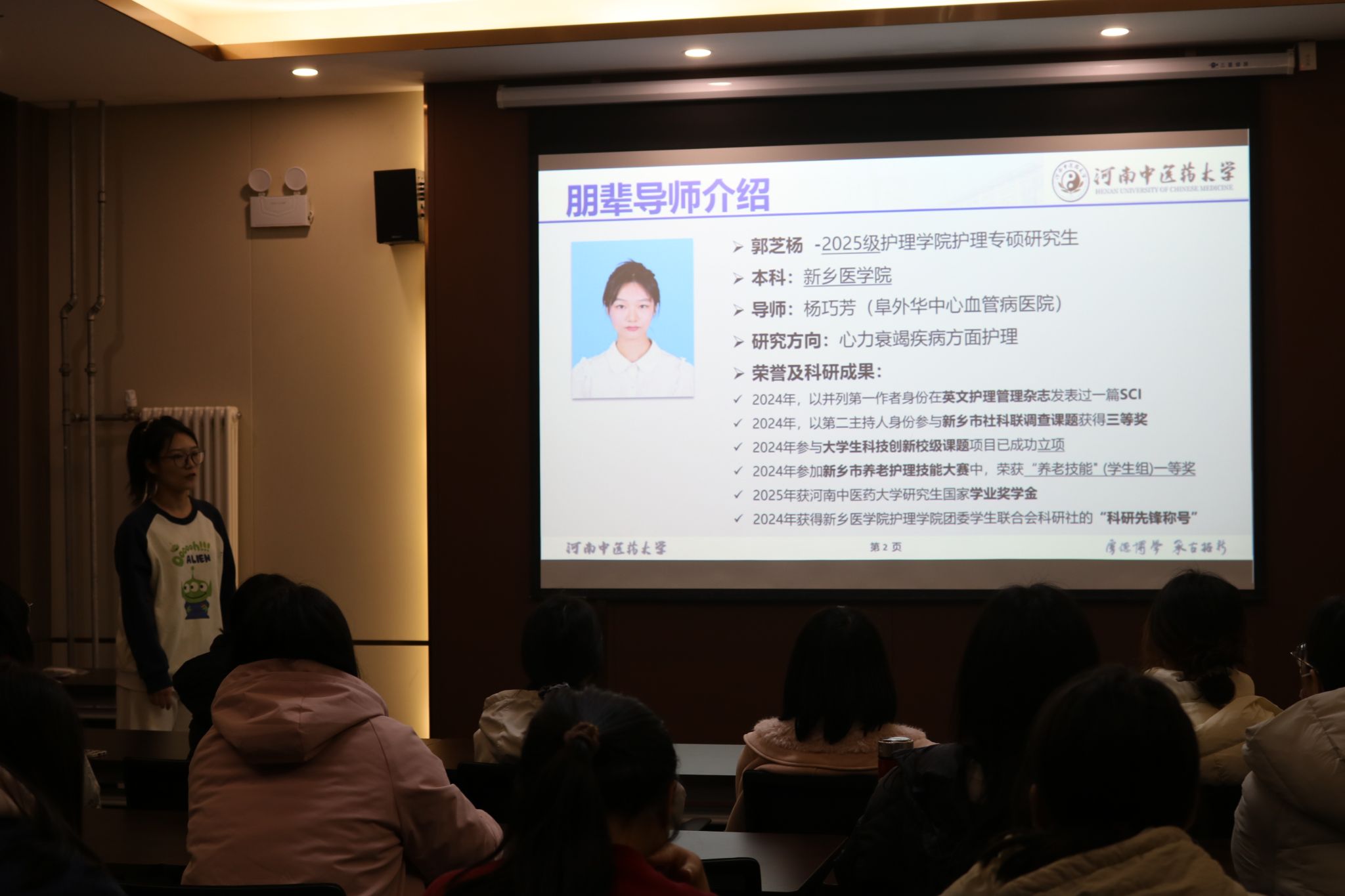 首先,朋辈导师学生负责人第一临床医学院(中西医结合学院)郝统杰详细介绍了学校朋辈导师队伍的建设理念与发展现状。他指出,朋辈导师经过严格选拔,均由各学院品学兼优、科研与实践能力突出的研究生代表组成,致力于发挥“传帮带”作用,以自身经历为学弟学妹提供精准化、个性化的指导,助力营造良好学风与学术生态。
